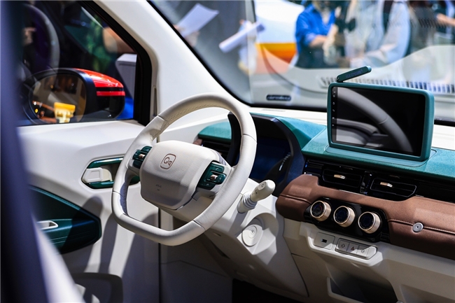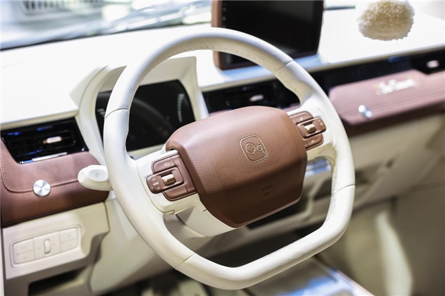 在A00级小车市场设计趋同的今天,冰淇淋双车以截然不同的美学态度,打破了市场的沉寂。冰淇淋复古风格如同一位从旧时光中走来的文艺青年。整车采用大面积镀铬饰件装饰前后保险杠、轮毂罩和门把手,在展台灯光下流转着温润光泽。美拉德色系的巧妙运用,从浅米黄到深棕褐的渐变,宛如秋日午后的暖阳,营造出满满的复古氛围。可拆卸的"小书包"、复古行李架和英伦漫游拉花,每一个细节都在诉说着对旧时光的温柔致敬。它不需要张扬,却自带焦点,停在展台一隅,就是一幅移动的复古画报,吸引着追求治愈系美学的观众。